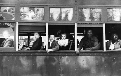 -Quizás sea porque me siento comprometido con mis fotos y no dejo que se publiquen si no estoy conforme con ellas. Tuve la oportunidad de publicar TheAmericans cuando era aún muy joven. No estaba interesado en hacer historias fotográficas como las que se hacían en la revista Life . Estaba interesado solamente en mis fotos. Y The Americans me permitió expresar lo que yo veía del pueblo norteamericano. Tenía algo así como una mirada virgen. Una mirada fresca, abierta a las sorpresas. Viajé por todo el país y cada cosa que veía me sorprendía. Fueron buenos tiempos. Yo no era una persona sofisticada, pero sabía que era un fotógrafo. No estaba impulsado por nada intelectual. Me guiaba la intuición. Había gente que era absolutamente nueva para mí. Por ejemplo, la gente de color.